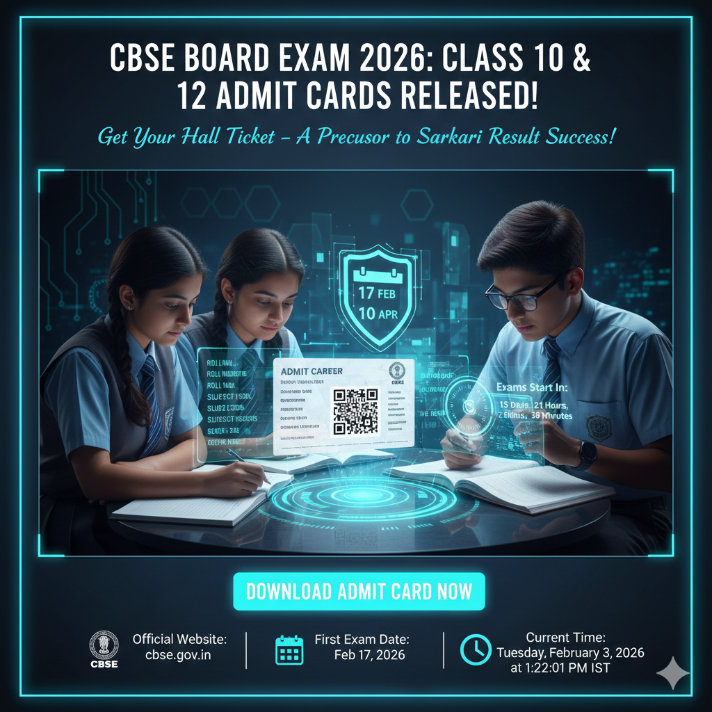 The Central Board of Secondary Education (CBSE) has officially released the admit cards for the Class 10 and Class 12 Board Examinations 2026. With exams set to begin on February 17, 2026, this document is the most critical asset for over 46 lakh students nationwide.
