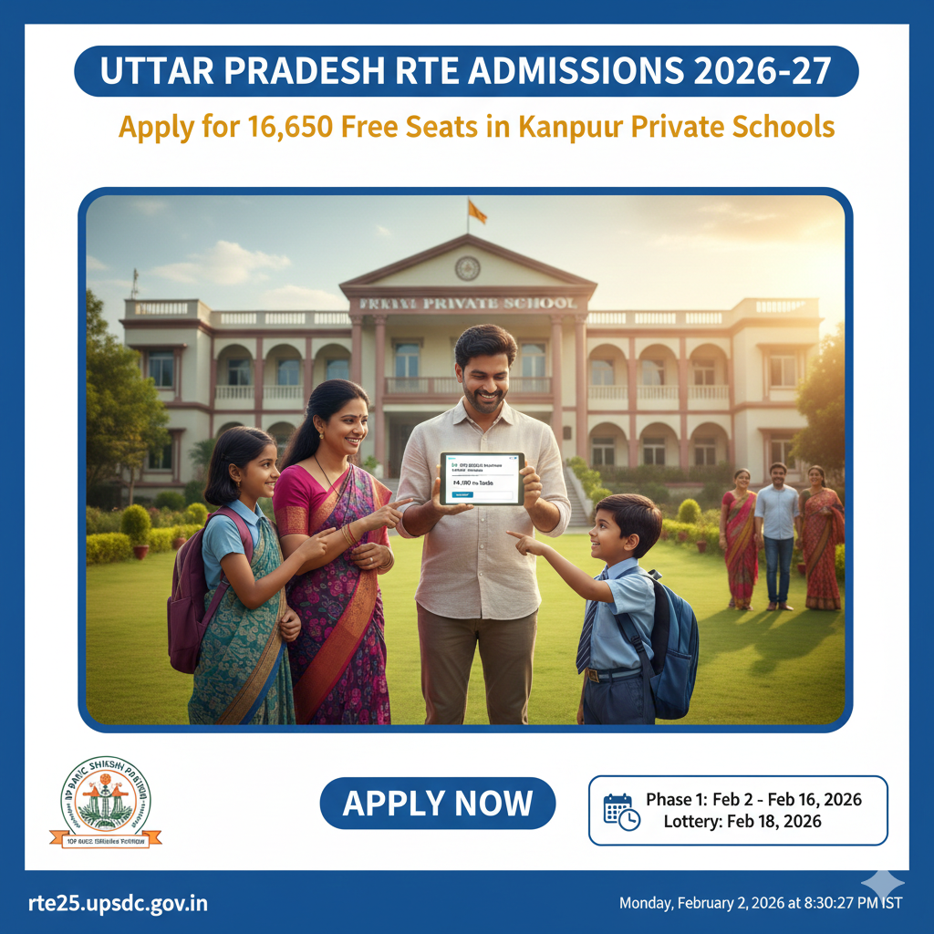 The Uttar Pradesh Basic Education Department has officially launched the RTE Admission 2026-27 process. This year, Kanpur alone is offering 16,160 free seats across 1,629 private schools. Under the Right to Education (RTE) Act, children from economically weaker and disadvantaged backgrounds can study in top-tier private institutions for free.
